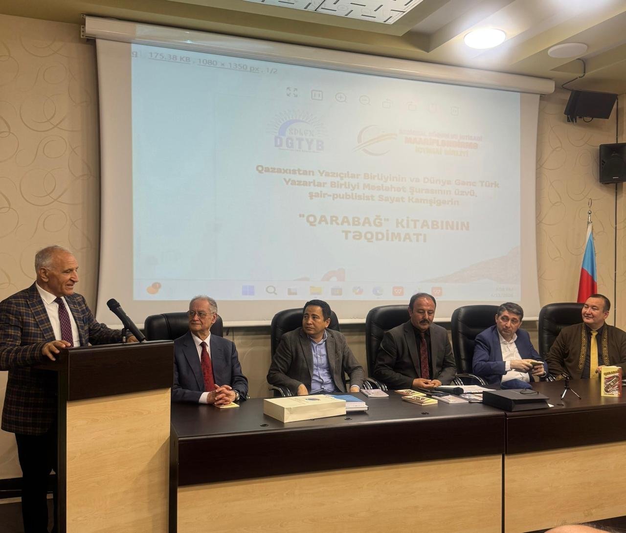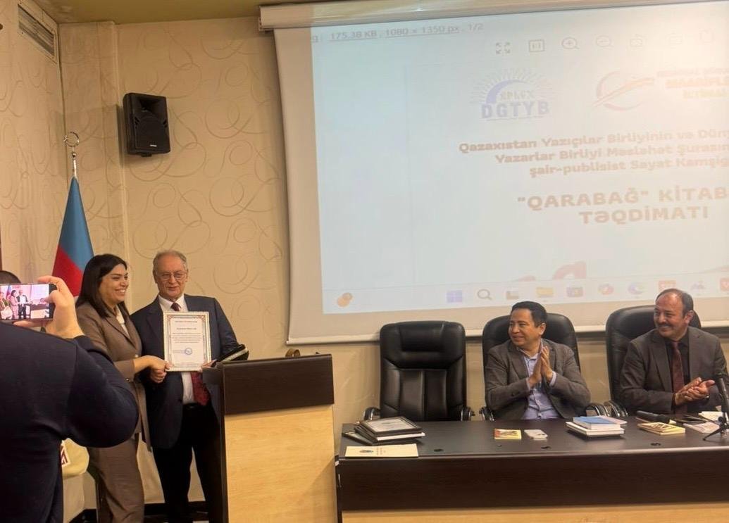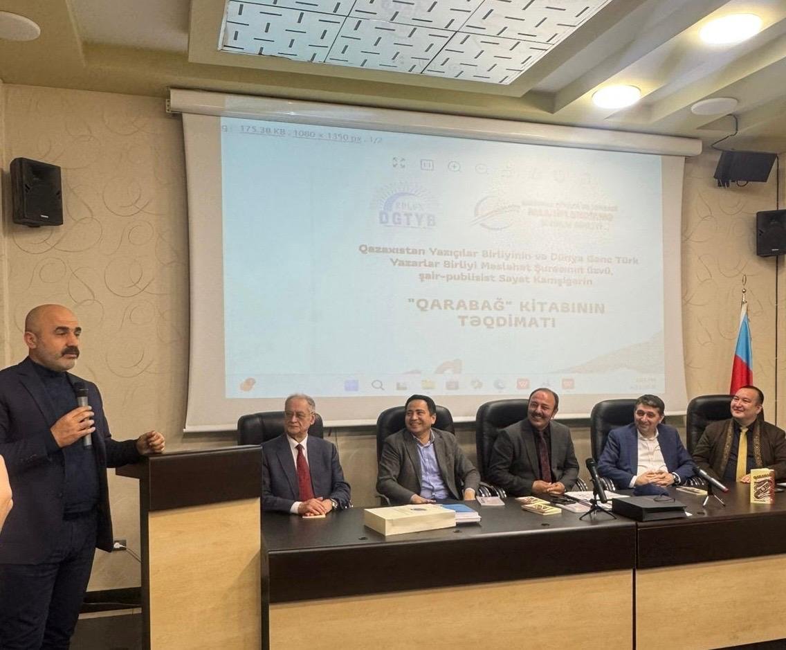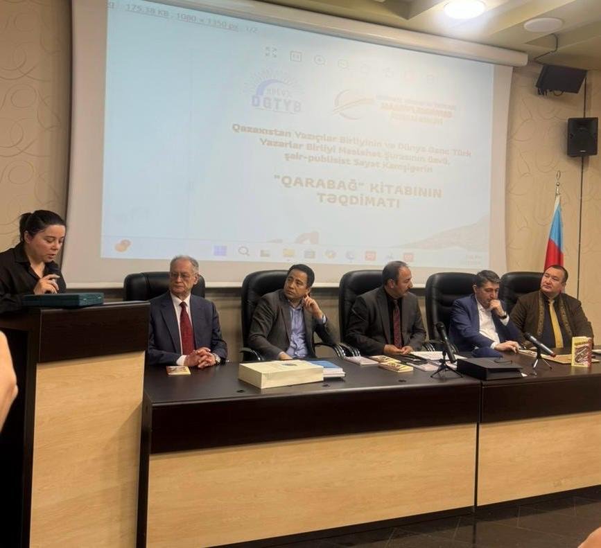 Aprelin 11-də Bakı şəhərində, Milli QHT Forumunun mənzil-qərargahında Dünya Gənc Türk Yazarlar Birliyi (DGTYB) ilə Regional Hüquqi və İqtisadi Maarifləndirmə İctimai Birliyinin (RHİMİB) birgə təşkilatçılığı ilə Qazaxıstan Yazıçılar Birliyinin və DGTYB Məsləhət Şurasının üzvü, şair-publisist Sayat Kamşıgerin “Qarabağ” kitabının təqdimat mərasimi keçirilib.