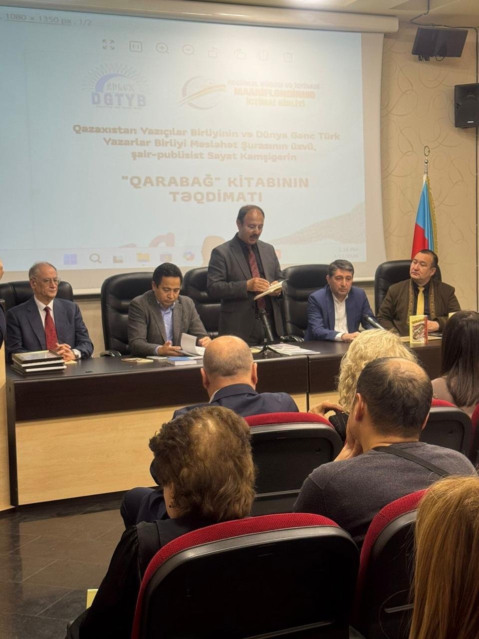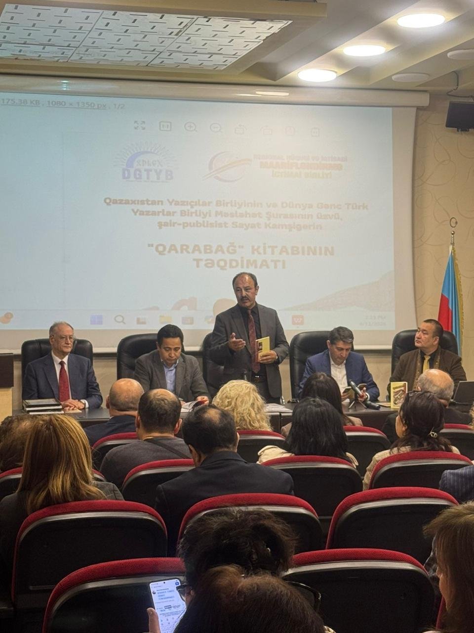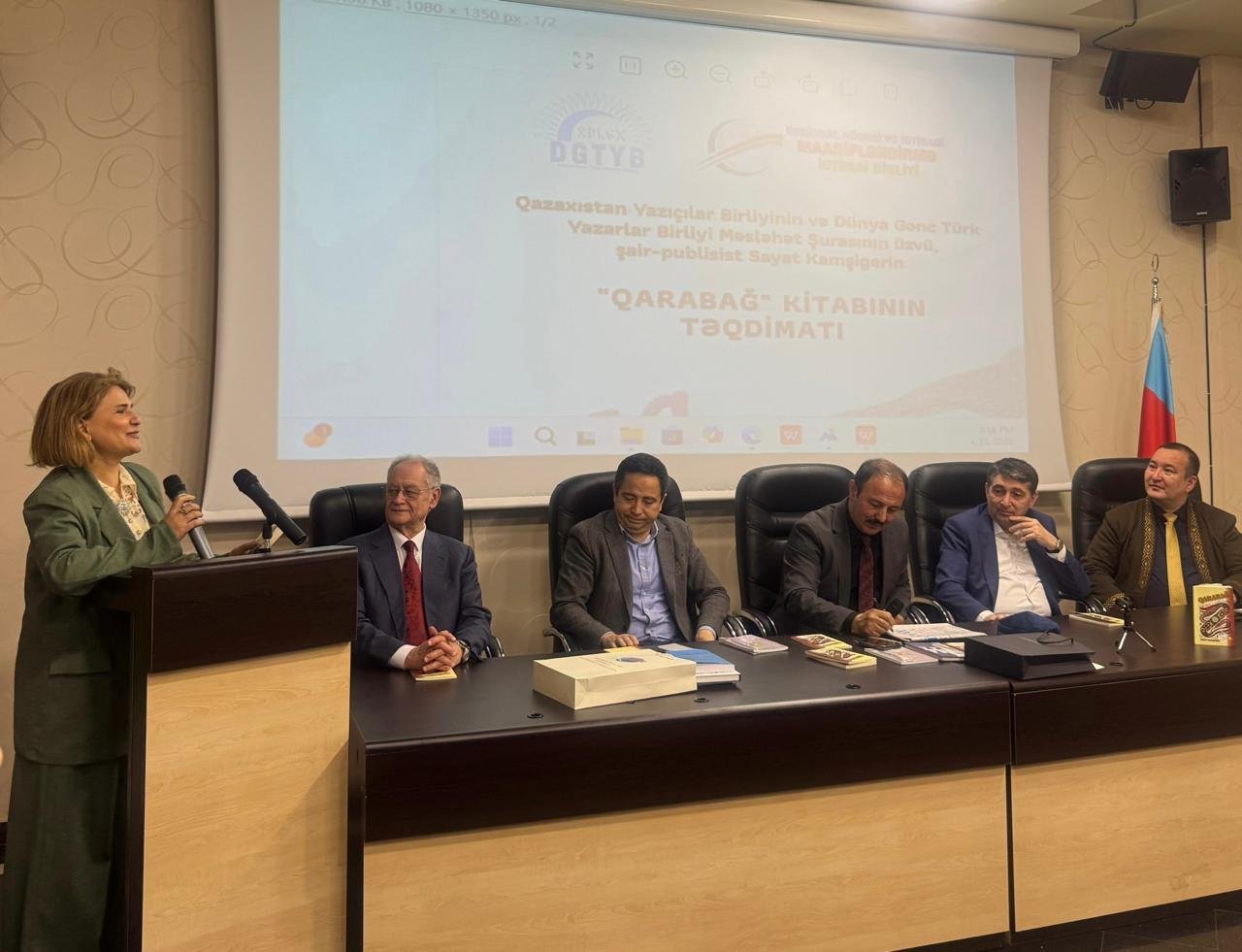 Aprelin 11-də Bakı şəhərində, Milli QHT Forumunun mənzil-qərargahında Dünya Gənc Türk Yazarlar Birliyi (DGTYB) ilə Regional Hüquqi və İqtisadi Maarifləndirmə İctimai Birliyinin (RHİMİB) birgə təşkilatçılığı ilə Qazaxıstan Yazıçılar Birliyinin və DGTYB Məsləhət Şurasının üzvü, şair-publisist Sayat Kamşıgerin “Qarabağ” kitabının təqdimat mərasimi keçirilib.