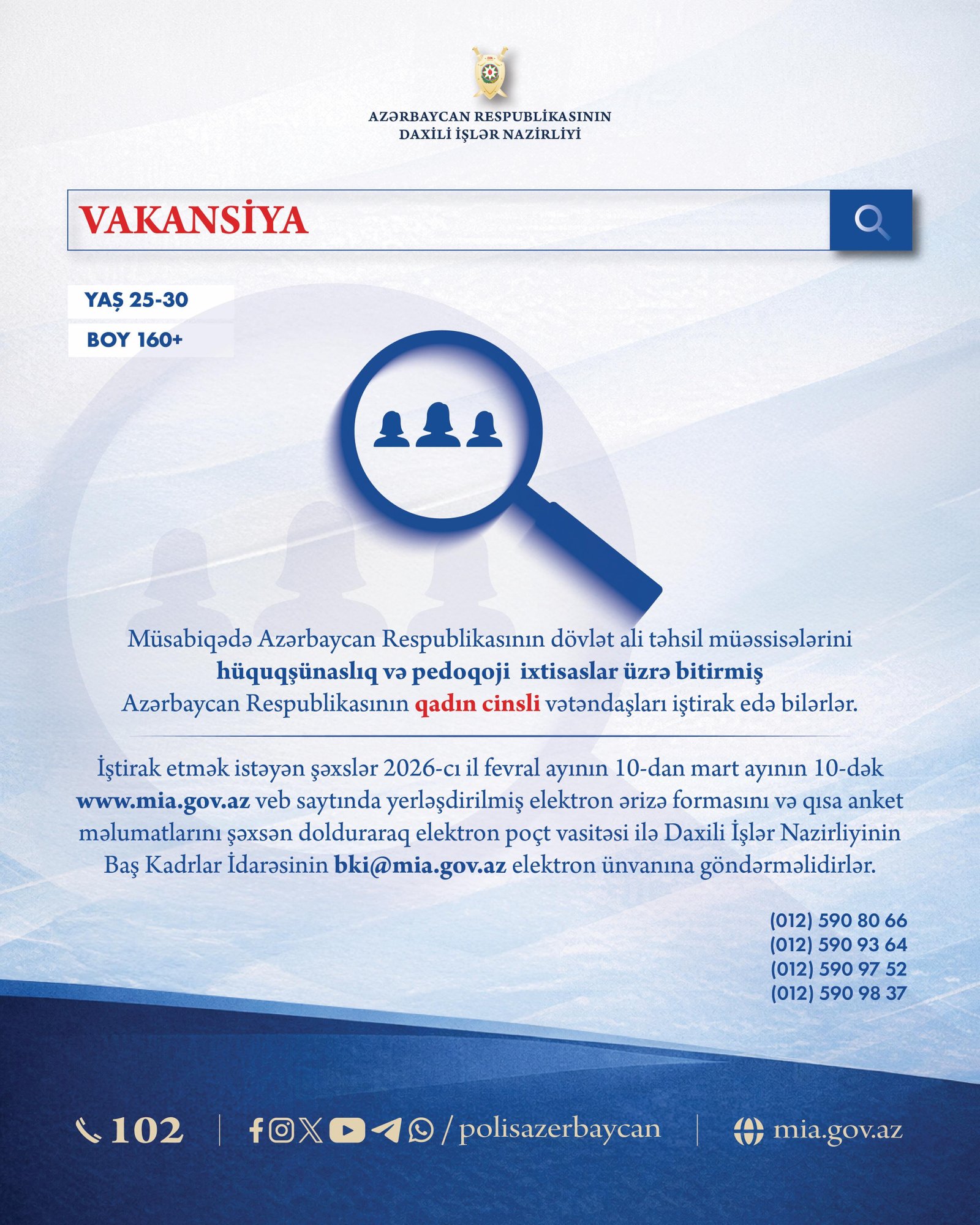 Daxili İşlər Nazirliyi qadın namizədlərin xidmətə qəbulu ilə bağlı müsabiqə elan edir