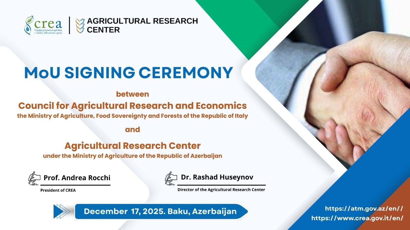 ATM və İtaliyanın Kənd Təsərrüfatı Tədqiqatları və Kənd Təsərrüfatı İqtisadiyyatı Şurası arasında Anlaşma Memorandumu imzalanıb