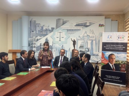 misilisiz xidmətləri, Müstəqil Azərbaycan Konstitusiyasının memarı və müəllifi olması, Azərbaycan dövlətçiliyini qoruyub saxlaması haqqında geniş və əhatəli bilgilər çatdırdı. Ümummilli Liderin dövlətçilik və suverenlik kursunun Cənab Prezidentimiz İlham Əliyev tərəfindən layiqincə yerinə yetirilməsini qeyd edən A.Əsgərli gənclərimizin də bu siyasəti bilməsin və yaymasını vacib adlandırdı.