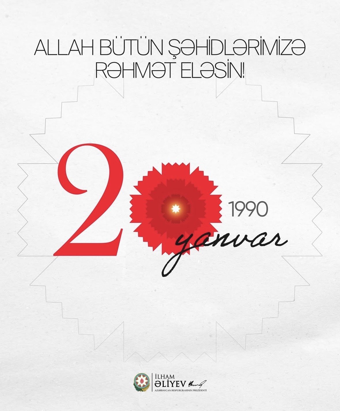 Prezident İlham Əliyev rəsmi sosial şəbəkə hesablarında 20 Yanvar faciəsinin ildönümü ilə bağlı paylaşım edib.