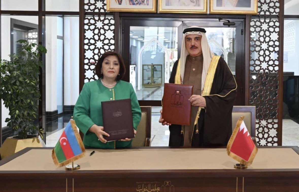 Azərbaycan Milli Məclisi ilə Bəhreyn Krallığı Nümayəndələr Şurası arasında Anlaşma Memorandumu imzalanıb. Sənədi Milli Məclisin sədri Sahibə Qafarova və Bəhreyn Nümayəndələr Şurasının sədri Əhməd bin Salman Al Musalam imzalayıblar.