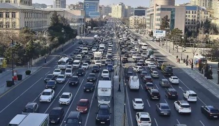Bakının bir sıra yollarında nəqliyyatın sıxlığı müşahidə olunur.