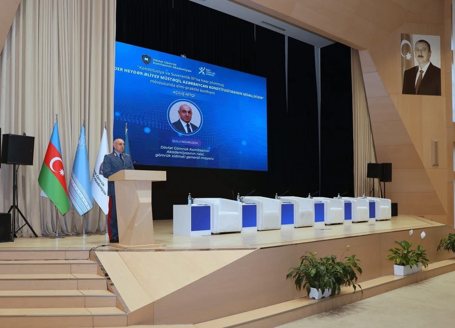 Dövlət Gömrük Komitəsinin Akademiyasının (DGKA) təşkilatçılığı ilə Bakı Gənclər Mərkəzində “Konstitusiya və Suverenlik İli”nə həsr olunmuş “Ümummilli Lider Heydər Əliyev - müstəqil Azərbaycan Konstitusiyasının müəllifidir” mövzusunda elmi-praktiki konfrans keçirilib.