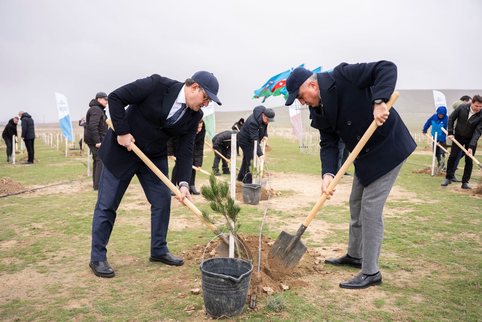 Tədbir çərçivəsində Abşeron yarımadasının torpaq-iqlim şəraitinə uyğun Eldar şamı və zeytun ağacları əkilib.