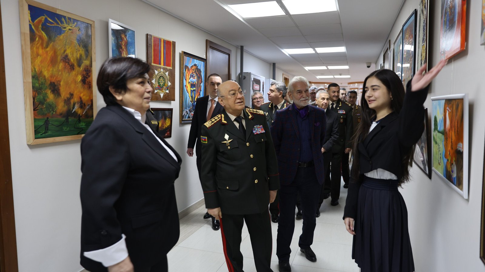 Sonra “Fövqəladə hallar uşaqların gözü ilə” XIII Respublika uşaq yaradıcılıq müsabiqəsinin seçilmiş işlərindən ibarət sərgiyə baxış keçirilib.