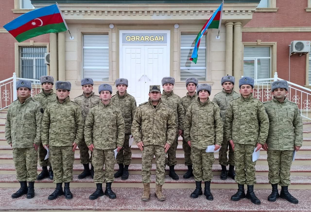 “Vətənə xidmət şərəfdir!” şüarı altında hərbi xidmətlərini başa vuraraq Azərbaycan Respublikası Silahlı Qüvvələrinin ehtiyatına buraxılan müddətli həqiqi hərbi xidmət hərbi qulluqçularına vəzifələrini şərəflə yerinə yetirdiklərinə görə təşəkkür edilib.