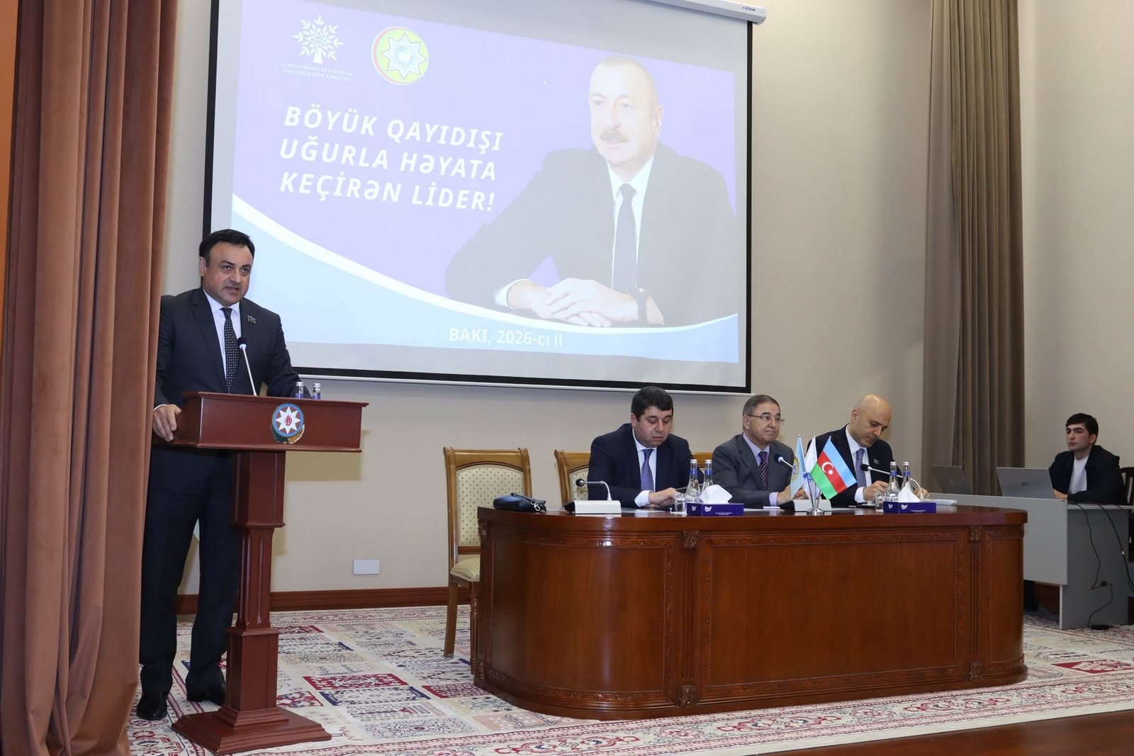 Tədbirin rəsmi hissəsindən öncə Universitetin inzibati binasında Ulu Öndər Heydər Əliyevin büstü önünə tər gül dəstələri düzülüb, Ümummilli Liderin əziz xatirəsi dərin ehtiramla yad edilib.