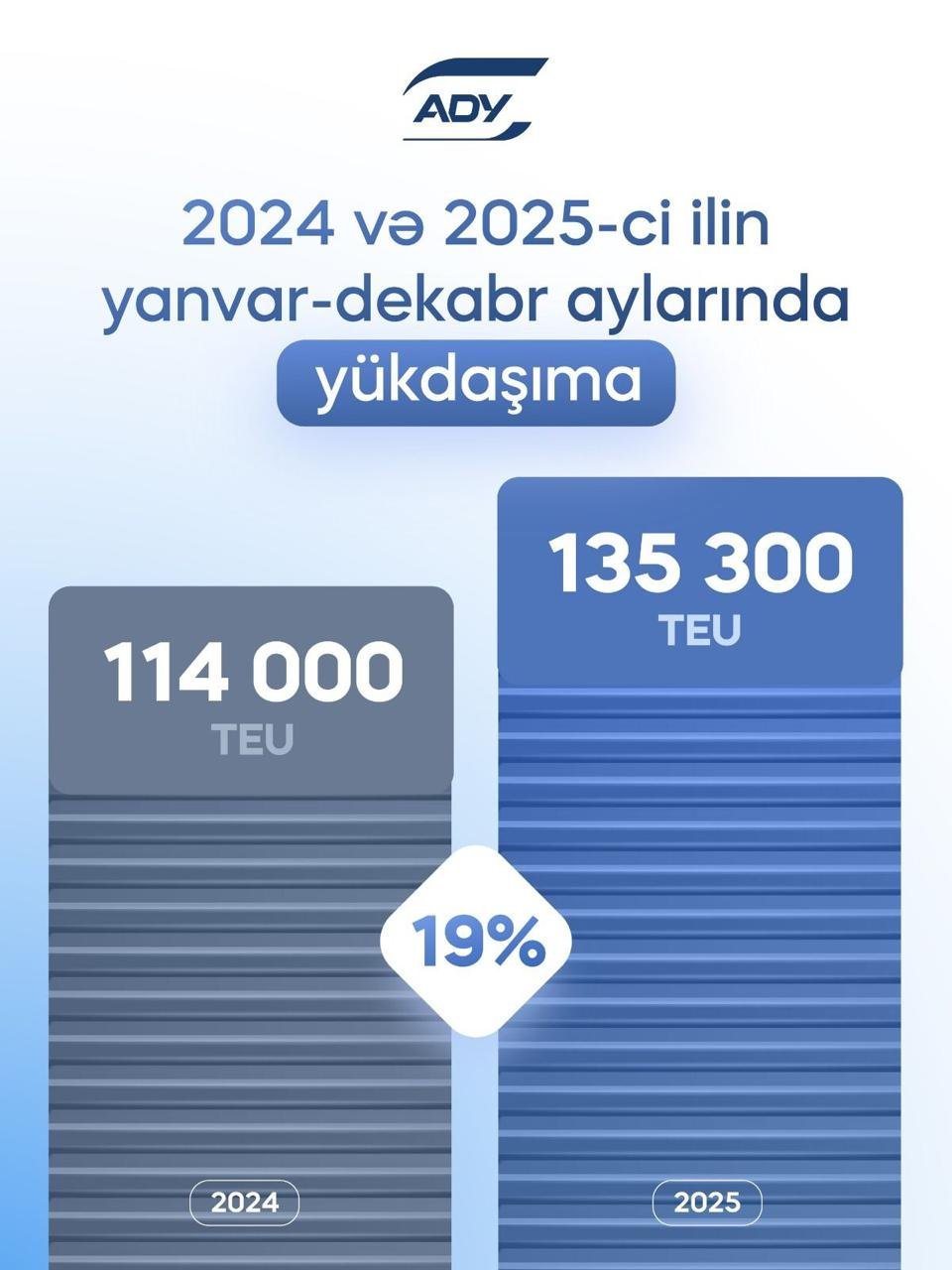 Ötən il ümumilikdə 135 300 TEU konteyner yük daşınıb ki, bu da 2024-cü ilin göstəricisindən (114 000 TEU) təxminən 19 faiz çoxdur.