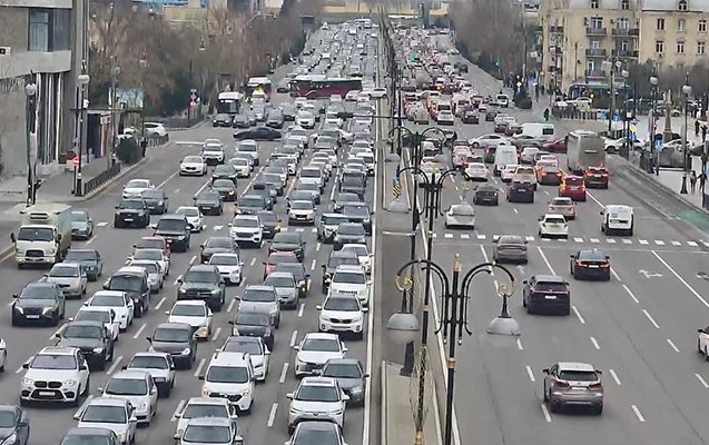 Bakının bir sıra yollarında nəqliyyatın sıxlığı müşahidə olunur.