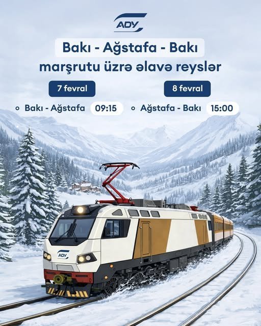 Azərbaycan Dəmir Yolları (ADY) artan sərnişin tələbatını təmin etmək məqsədilə 15 fevral tarixində Bakı-Ağstafa-Bakı istiqamətində əlavə qatar reysləri təyin edir.